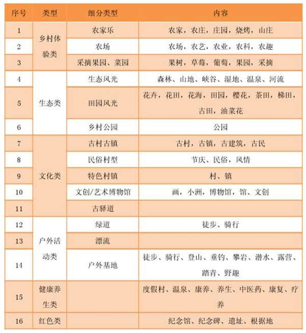 附表1 乡村旅游产品供给分类一览表(依产品主题)