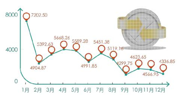 图1.3 广东乡村旅游接待游客量全年趋势(单位:万人次)