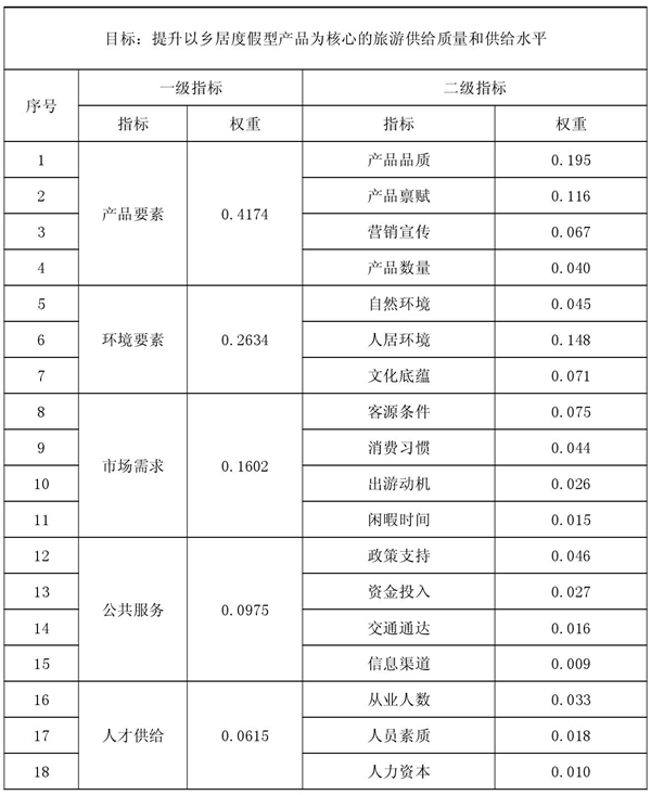 采用关键成功要素分析法分析,得出目标、一级和二级要素权重: