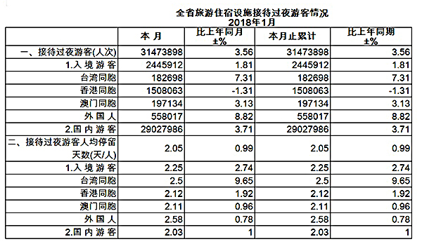 全省旅游住宿设施接待过夜游客情况(2018年1月)