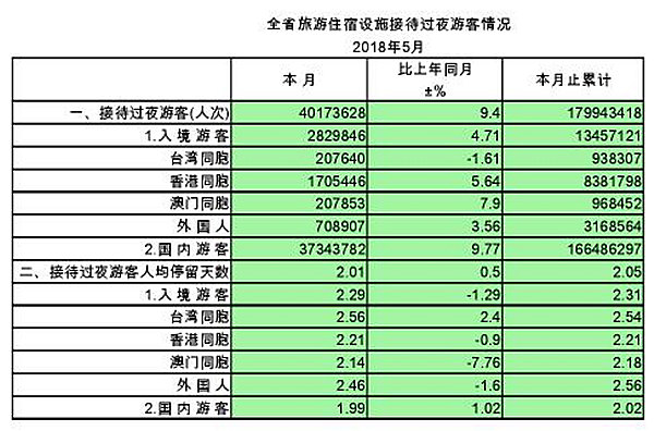全省旅游住宿设施接待过夜游客情况(2018年5月)