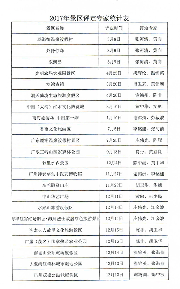 广东省旅游景区质量等级评定委员会关于拟批准惠州市南昆山云顶旅游度假区和惠州市大亚湾红树林城市湿地公园景区为国家AAAA级旅游景区的公示