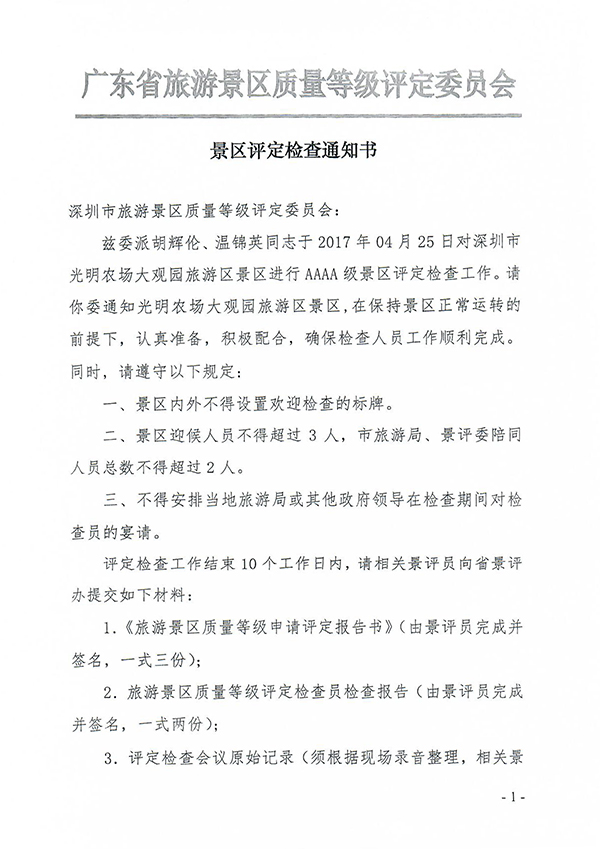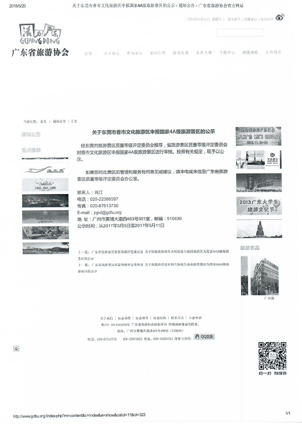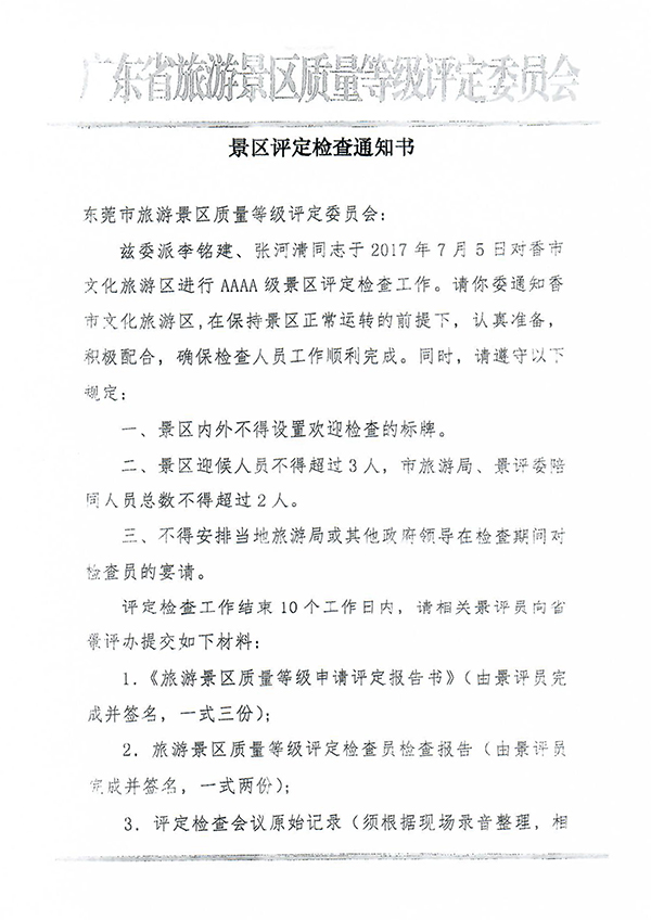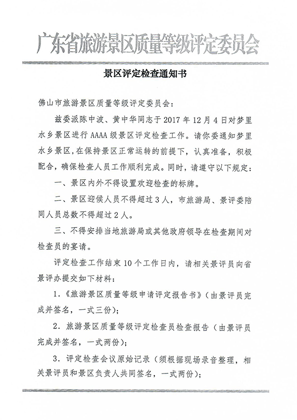 广东省旅游景区质量等级评定委员会关于 拟批准佛山市梦里水乡景区为国家AAAA级旅游景区的公示
