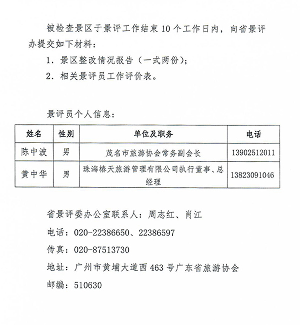 广东省旅游景区质量等级评定委员会关于拟批准茂名市冼太夫人故里文化旅游景区和茂名市广垦(茂名)国家热带农业公园为国家AAAA级旅游景区的公示