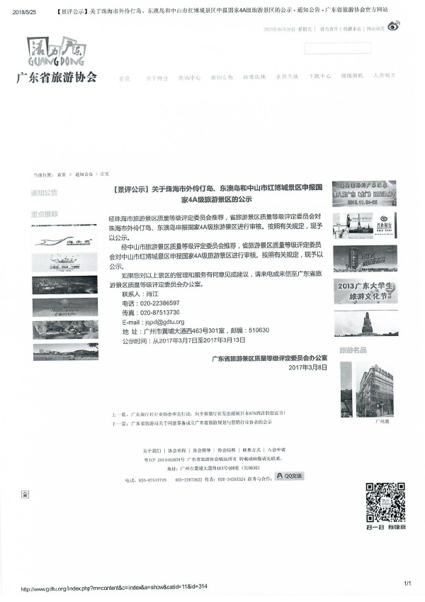 广东省旅游景区质量等级评定委员会关于珠海御温泉度假村申报国家4A级旅游景区的公示