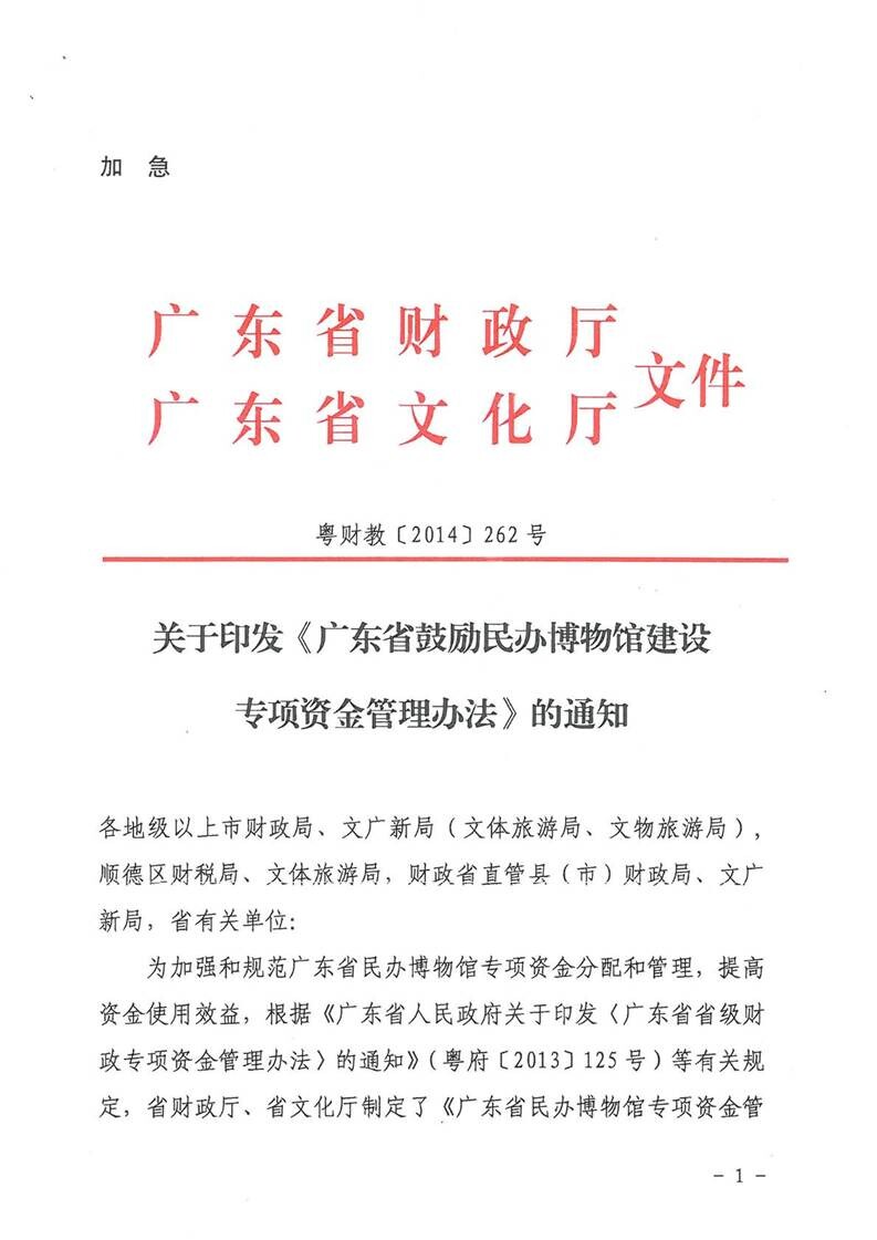 关于印发《广东省鼓励民办博物馆建设专项资金管理办法》的通知
