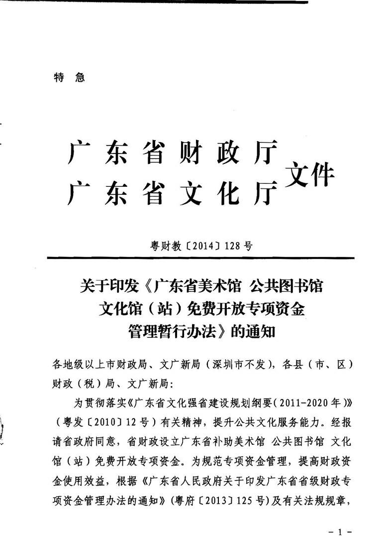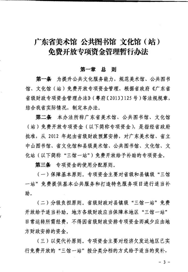 关于印发《广东省美术馆 公共图书馆 文化馆(站)免费开放专项资金管理暂行办法》的通知