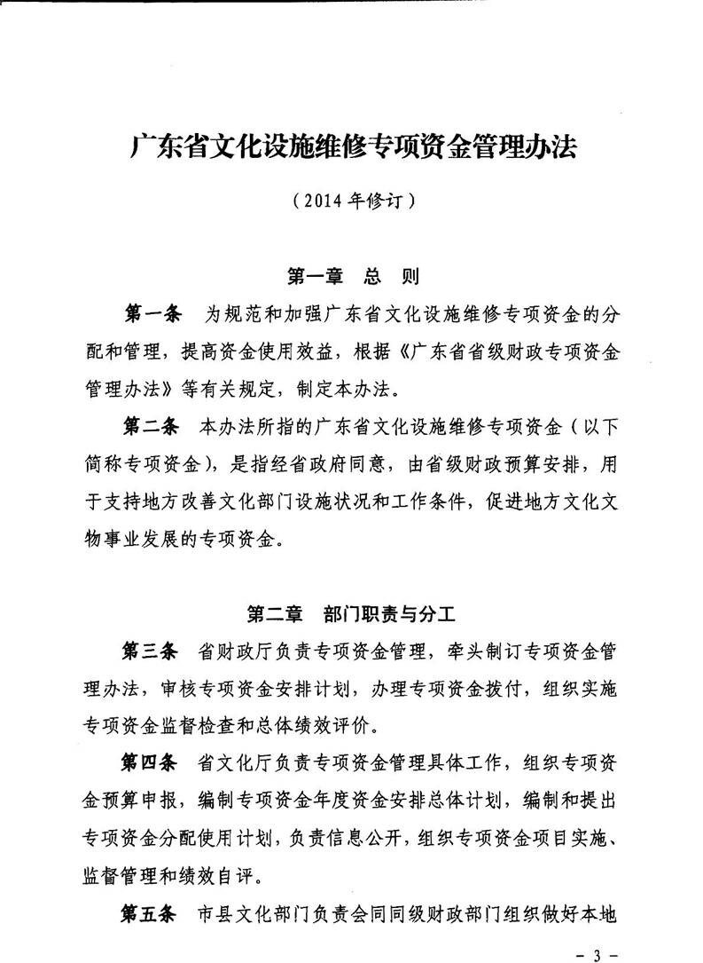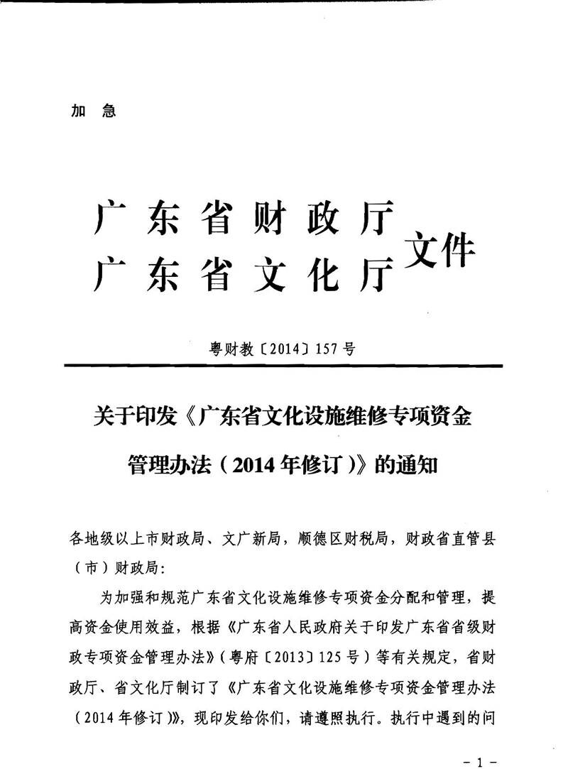 关于印发《广东省文化设施维修专项资金管理办法﹙2014年修订﹚》的通知