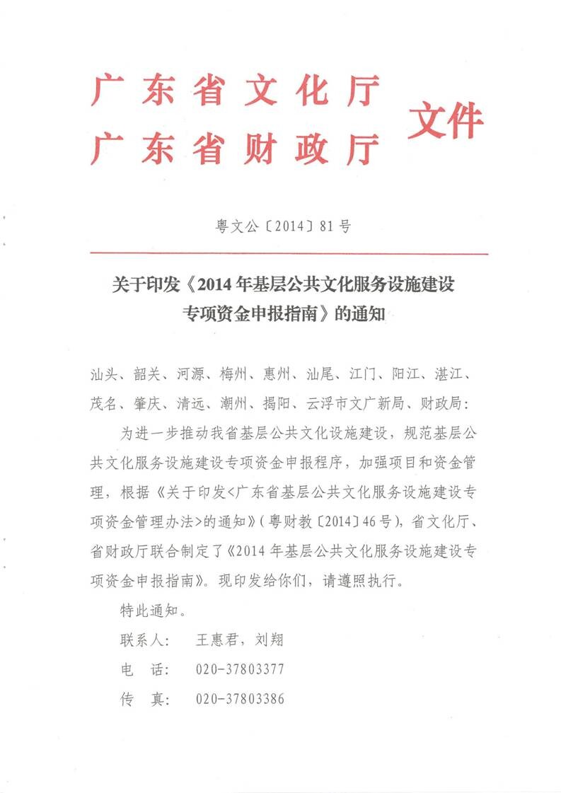 关于印发《2014年基层公共文化服务设施建设专项资金申报指南》的通知