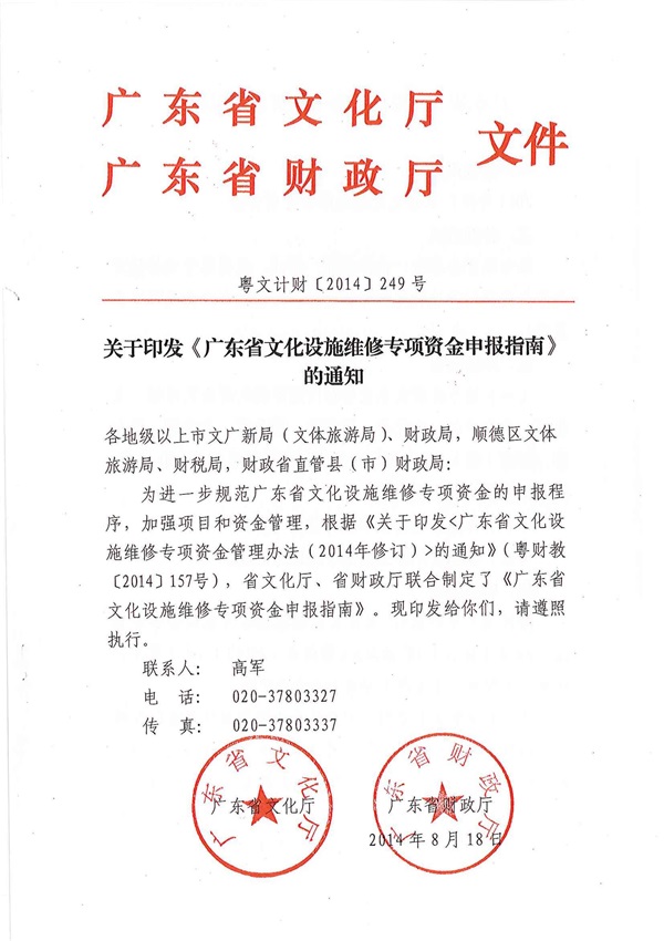 关于印发《广东省文化设施维修专项经费申报指南》的通知