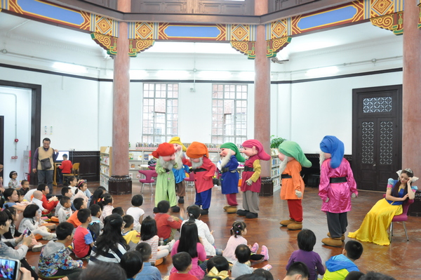 白雪公主和七个小矮人为小朋友们进行互动演出