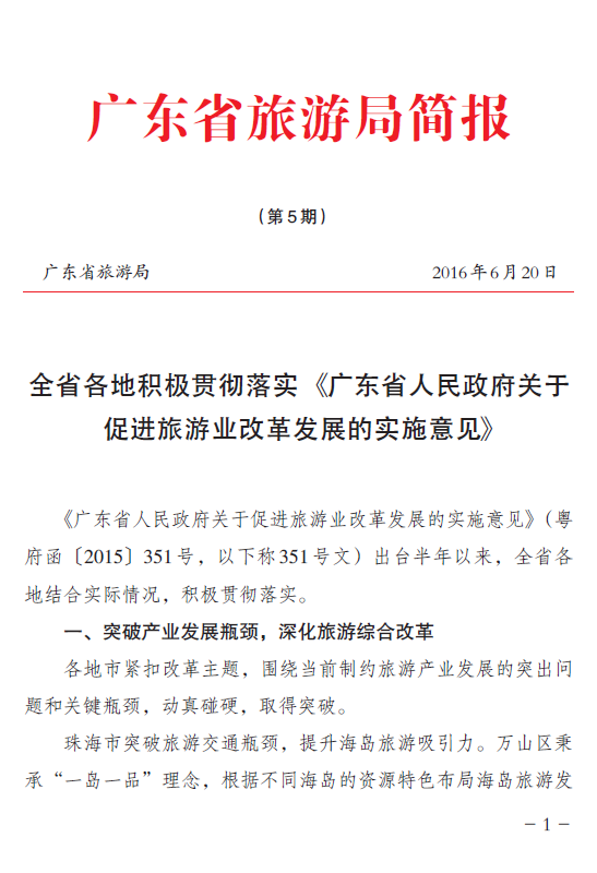 全省各地积极贯彻落实《广东省人民政府关于促进旅游业改革发展的实施意见》