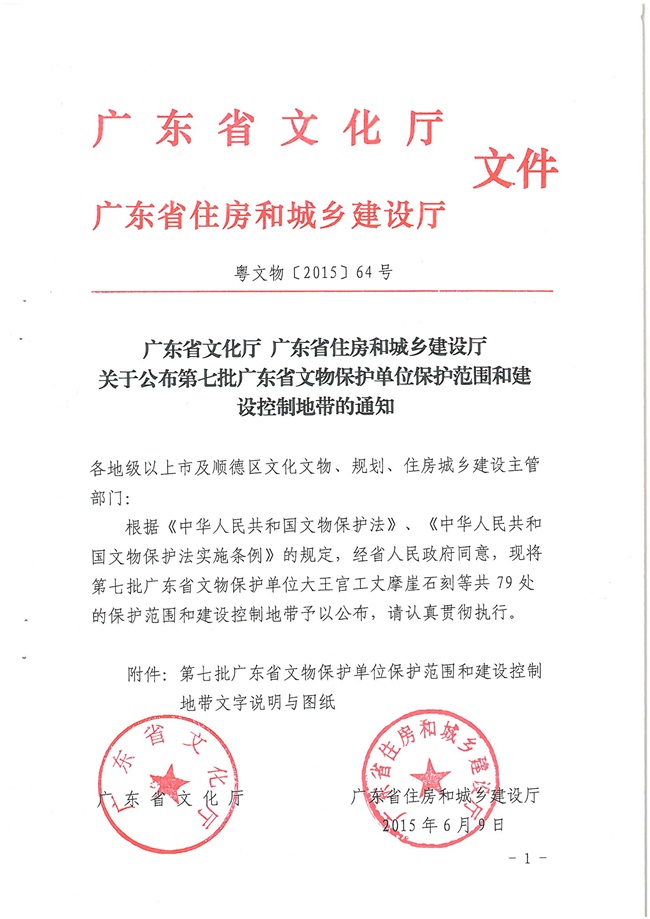广东文化厅 广东省住房和城乡建设厅 关于公布第七批广东省文物保护单位保护范围和建设控制地带的通知