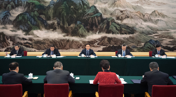 3月1日,中共中央政治局常委、国务院副总理、粤港澳大湾区建设领导小组组长韩正在北京人民大会堂主持召开粤港澳大湾区建设领导小组会议。新华社记者 申宏 摄