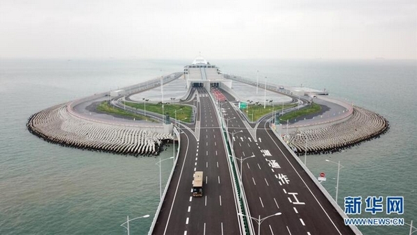 车辆行驶在港珠澳大桥上(10月24日无人机拍摄)。 图片来源:新华网