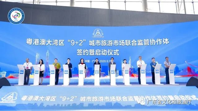 9月11日,在广州国际会展中心(琶洲展馆)举办的广东国际旅游产业博览会上,隆重举行了粤港澳大湾区“9+2”城市旅游市场联合监管协议签约仪式,来自香港特别行政区、澳门特别行政区旅游主管部门与广东省广州、深圳、珠海、佛山、惠州、东莞、中山、江门、肇庆等9个城市文化和旅游主管部门,共同签署了《粤港澳大湾区“9+2”城市旅游市场联合监管协议书》。该协议从政府、市场主体、行业组织等不同层面,对改进和加强旅游市场监管,推动粤港澳大湾区旅游业高质量发展提出具体要求,是今后一段时期粤港澳大湾区加强旅游市场监管的重要工作指引,标志着粤港澳大湾区“9+2”城市旅游合作迈上了新的发展平台,迎来新的发展阶段。
