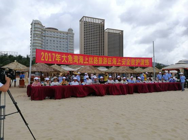 为了贯彻落实市安委会和省旅游局关于开展2017年“安全生产月”和“安全生产万里行”活动和深入开展2017年安全生产应急预案演练活动的通知要求,深入开展全市“2017年旅游安全生产月”活动,进一步提高我市海滨浴场的应急救援能力,加强我市旅游安全生产应急管理水平,2017年6月15日,阳江市旅游和外事侨务局联合海陵岛试验区旅游外侨局在海陵岛大角海上丝路旅游区举行海滨浴场应急救援演练活动。本次演练内容为两起,一起为溺水救援演练,另一起为海上娱乐项目救援演练,旨在使海滨浴场的救援人员能正确掌握海滨浴场溺水和海上娱乐项目突发事件的应急处置方法、要领和操作程序,提高海滨浴场溺水和海上娱乐项目突发事件的救援能力,保证应急救援工作高效有序进行,切实保障游客的生命和财产安全。演练结束后,市旅游和外事侨务局副局长梁健巧同志对此次演练进行了点评。梁健巧副局长指出,这次演练非常成功,演练活动的筹备工作充分,情景设置合理,组织实施严密,指挥调度科学,联动协作有效,处置措施得当,演练活动内容丰富,演练人员之间配合密切,动作规范、快速到位,达到了检验预案、锻炼队伍、磨合机制和示范基层的预期目标,整个过程贴近实战,达到了此次演练的预期效果。