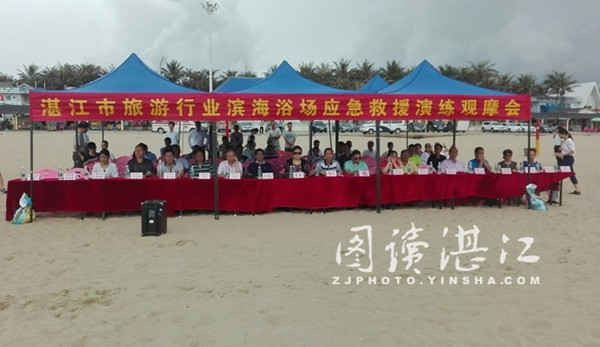 根据市旅游局、开发区安监局关于开展安全生产应急演练的工作部署,日前,由湛江市旅游局主办,开发区旅游局承办的全市旅游行业滨海浴场应急救援演练观摩会暨旅游景区安全风险防控管理培训班,在龙海天景区成功举办。市旅游局,各县(市、区)旅游局,南三岛滨海旅游示范区产业发展局,各A级景区、滨海浴场以及开发区相关部门分管安全生产负责人约70余人到场观摩学习。