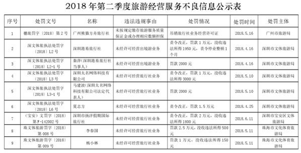 附件:2018年第二季度旅游经营服务不良信息公示表