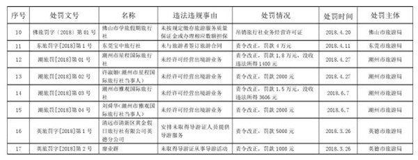 2018年第二季度,全省各级旅游主管部门共查处涉旅案件17宗,涉及9家经营旅游业务的企业和8名旅游从业人员。经研究,我局决定对以上企业和个人违法违规经营行为纳入旅游经营不良信息进行公示,公示有效时间1年(自2018年7月5日--2019年7月5日)。