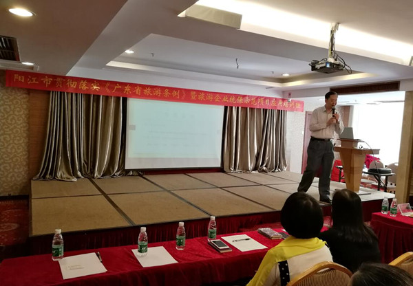 为了深入贯彻落实党的十九大精神,认真做好《广东省旅游条例》从11月1日实施落实,进一步提高全市旅游安全工作水平, 2017年11月3日,阳江市旅游局举办《广东省旅游条例》学习培训班暨召开全市旅游安全工作会议。本次培训特邀江泰保险经纪有限公司广州分公司经理石磊同志担任讲师,培训内容涵盖《广东省旅游条例》的解读、提升旅行社安全管理、转移经营风险、如何开拓市场客源等多个方面,培训中气氛活跃,互动积极,通过剖析典型案例,深入浅出地阐明了加强旅行社风险管理的关键所在,提高了我市旅行社管理水平和风险防控水平,保障了游客的生命财产安全。